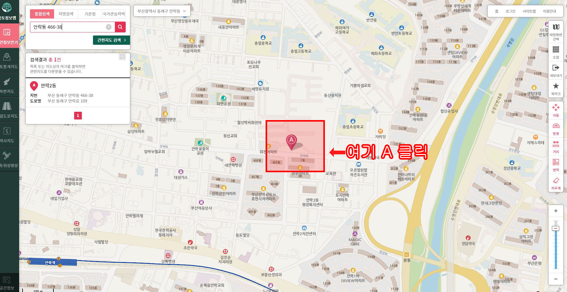 저는 부산사람이기 때문에 아무 곳이나 찍었습니다. 위치는 부산 안락동이네요.